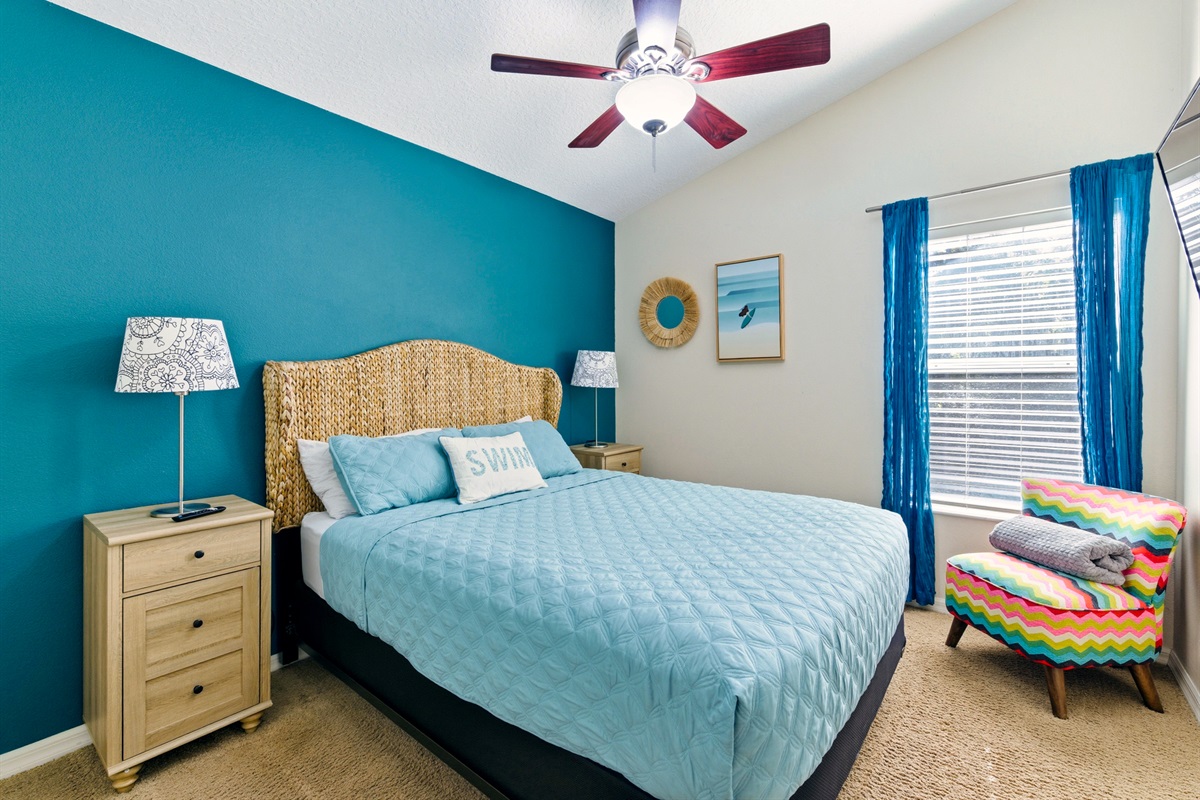 2nd bedroom: Teal Room: Queen bed, Smart TV