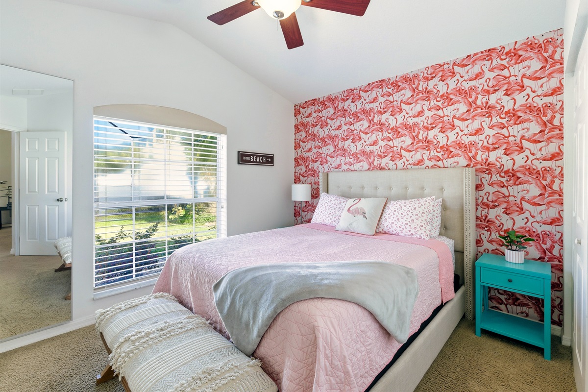 4th bedroom: Flamingo Room: Queen bed, Smart TV